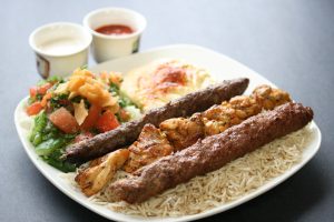Meat Lover Plate CA$15.99 Description 3 Skewers (1 chicken kebab, 1 Kafta and 1 sujok) served on a bed of rice.